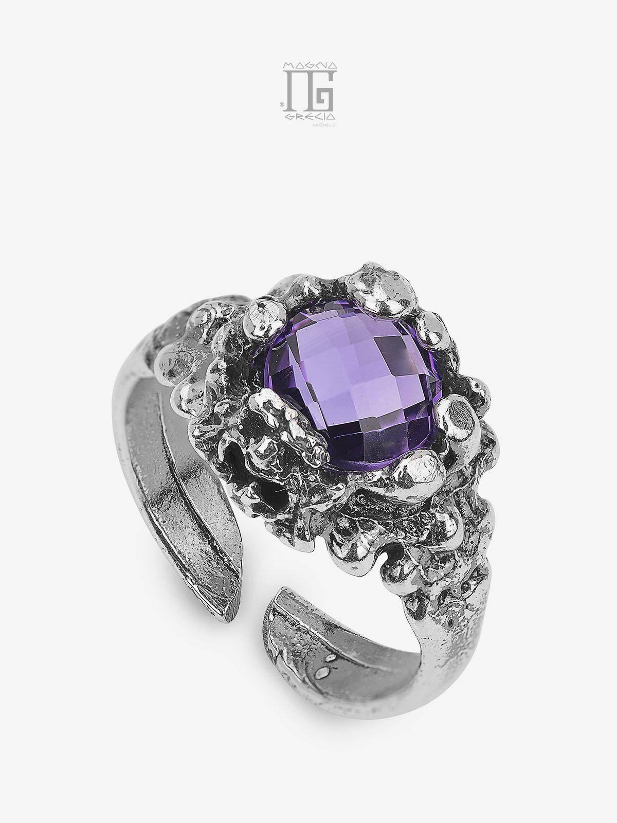 Anello "Armonia" in Argento con Maschera Apotropaica e Agata fucsia Cod. MGK 3892 V