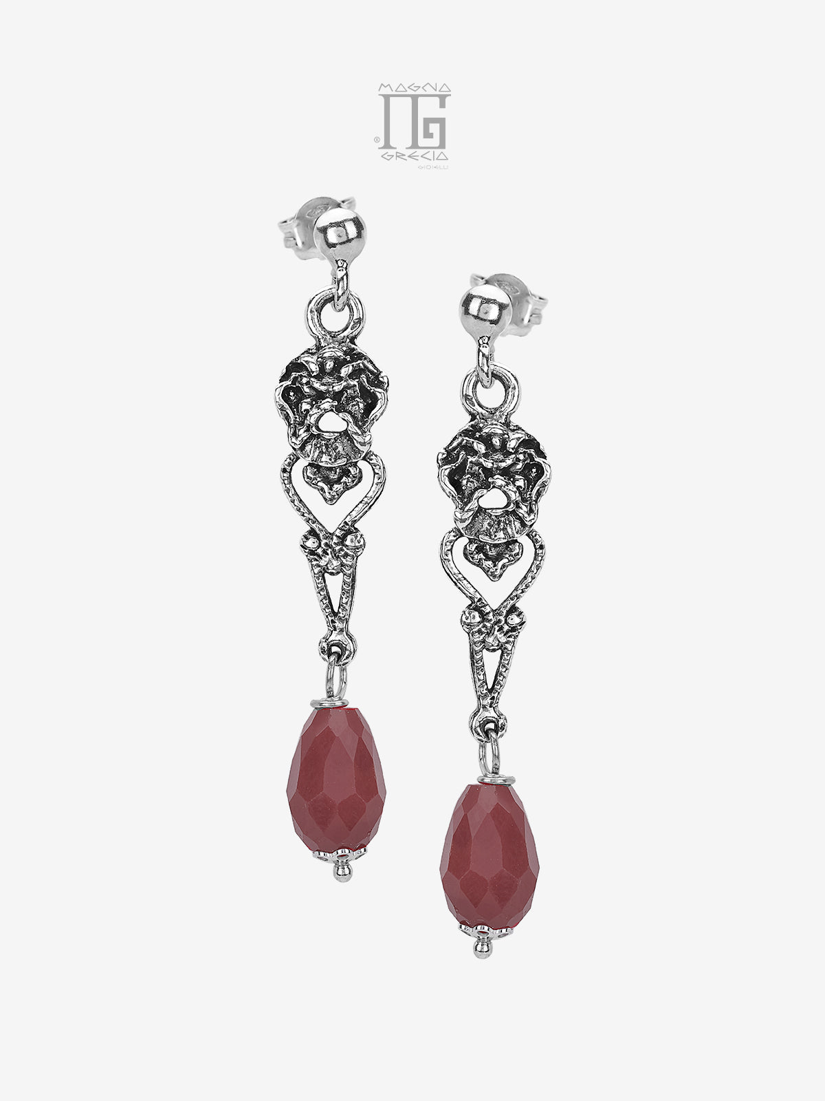 Orecchini in Argento con Maschera Apotropaica e Pietra bordeaux Cod. MGK 4226 V